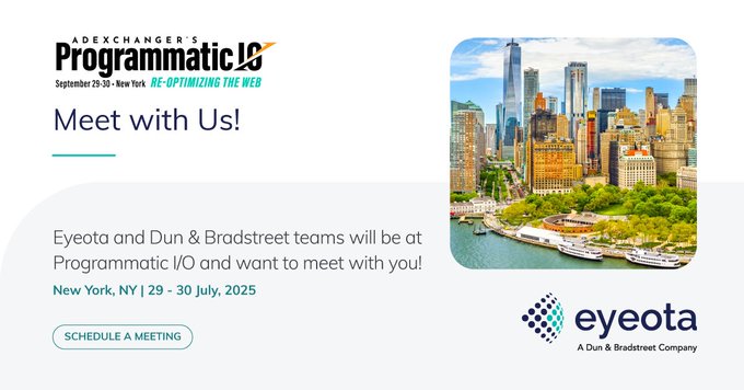 @EyeotaTweets Eyeota, a Dun & Bradstreet company, is heading to Programmatic I/O New York on September 29–30, and we’re eager to connect with fellow data-driven marketers and innovators. 📅 Book a time with ushubs.li/Q03KpxLP02on78kL 💬Or drop us a message. We’d loo/balSr7j8pL